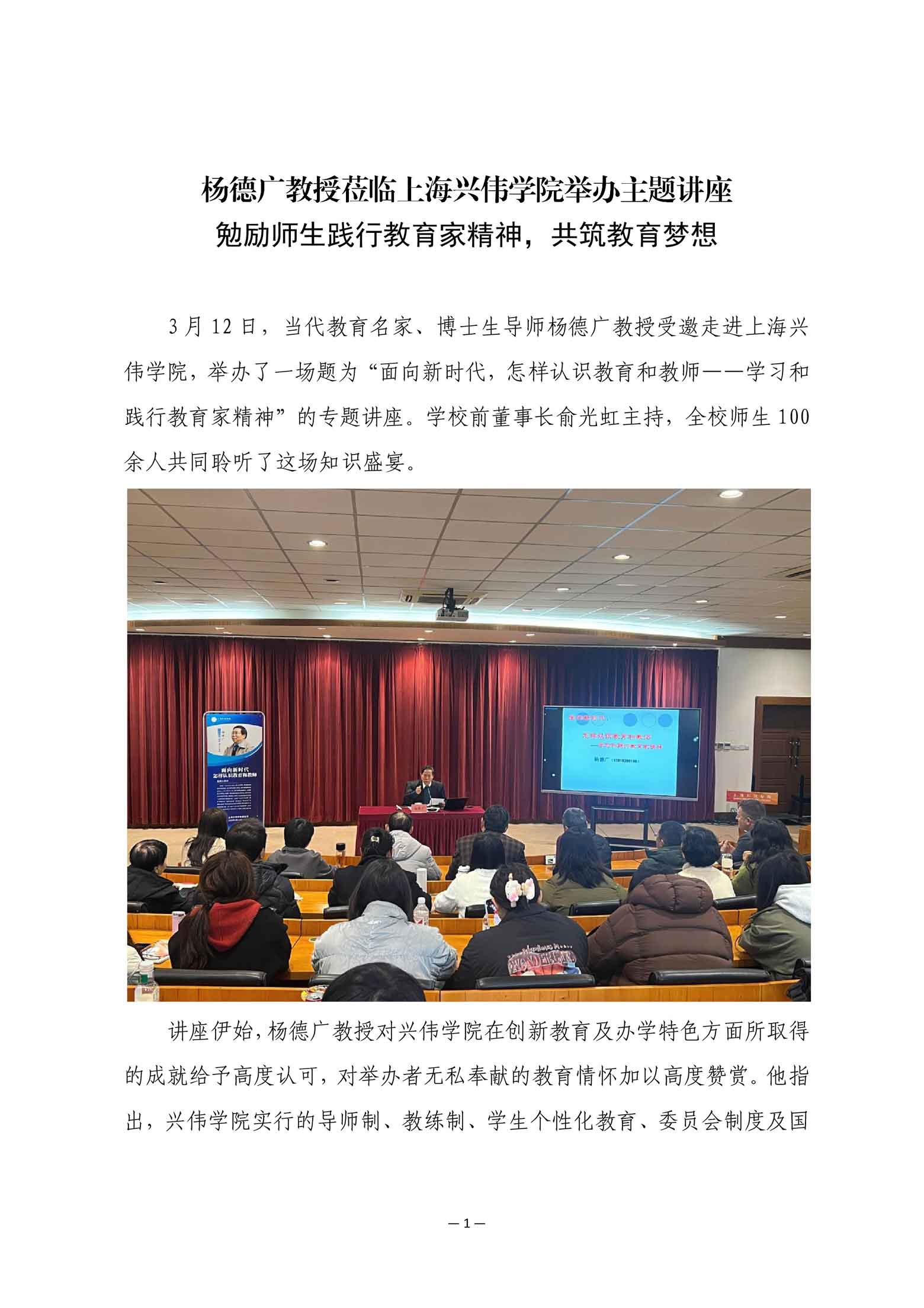 杨德广教授受邀走进兴伟举办讲座 2025年3月